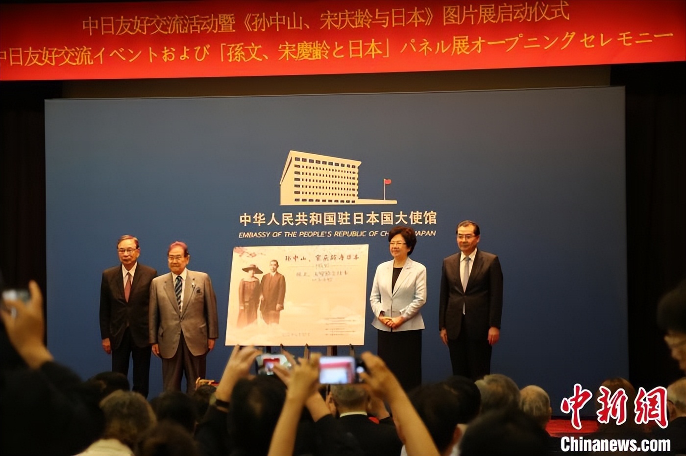 中新网东京电 (记者 朱晨曦)6月18日,中国驻日本大使馆同中国宋庆龄基金会联合举办《孙中山、宋庆龄与日本》图片展。中国宋庆龄基金会主席李斌、中国驻日本大使吴江浩出席并讲话。日中协会会长野田毅、日中友好会馆会长宫本雄二等中日各界人士约80人参加。