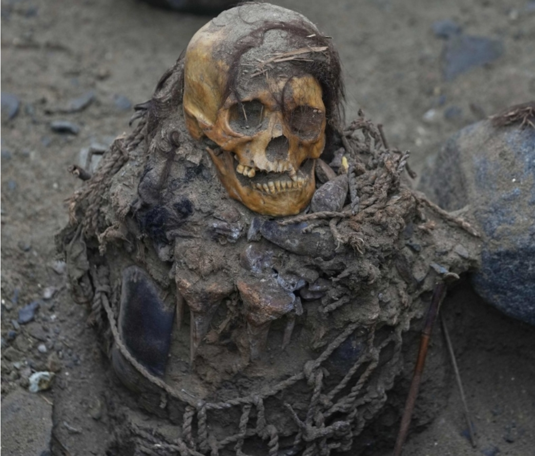 秘鲁首都利马近日发现一具千年木乃伊:施工人员在距地表仅半米处进行挖掘以扩建天然气管道,意外发现一具约1000年前的前印加时期木乃伊。