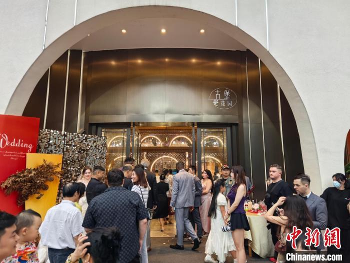图为新娘穿上中式婚礼服,与新郎一起向宾客一一敬酒。蒙明鸣 摄