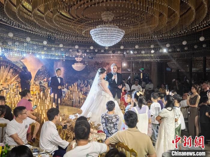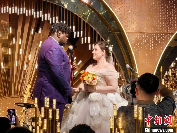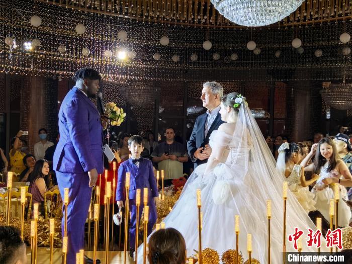 6月21日,来自尼日利亚的洋“网红”小黑与来自美国的栗子在广西柳州市举行“国际婚礼”,来自不同国度、不同文化的亲友团纷纷在婚礼现场献艺,小黑母亲还唱起节奏明快的非洲舞曲,舞动全场。说着一口流利柳州当地语言的小黑在广西留学后就留在当地工作,以风趣幽默的短视频成为当地颇具名气的“洋网红”,其与新娘栗子在中国相识相爱,并决定在他们一起工作的柳州市举行中西结合式的婚礼。