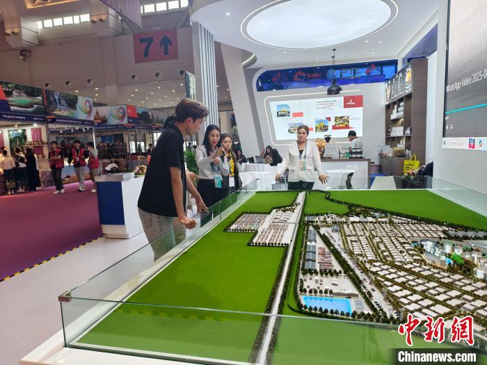 6月20日,第9届南博会万象物流园展位工作人员为参观者介绍园区情况。 中新社记者 韩帅南 摄