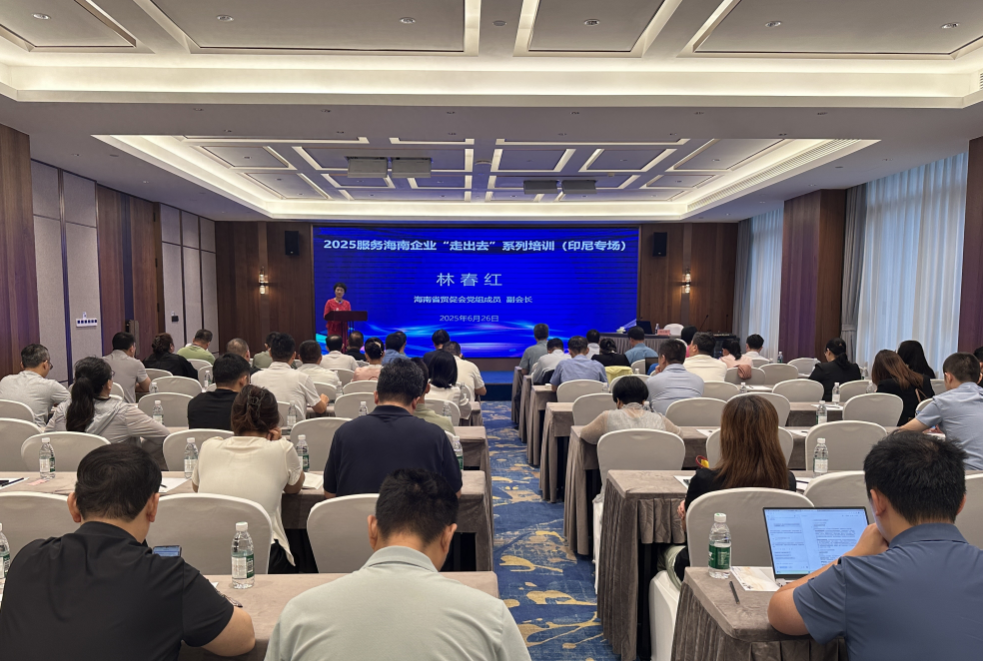 在全球经济深度融合与区域合作日益紧密的时代背景下,为助力海南企业积极拥抱国际市场、提升海南自贸港在全球经济格局中的开放能级,同时推动中国与印尼经贸合作迈上新台阶,6月26日上午,由海南省贸促会主办,海南国际商会、海南省自由贸易区跨境贸易商会承办的2025服务海南企业“走出去”系列培训(印尼专场)在海口顺利举行。海南省贸促会党组成员、副会长林春红出席活动并发表致辞,来自海南重点贸易投资企业和商协会负责人约100余人齐聚一堂参与培训,共探开拓印尼市场的新机遇。