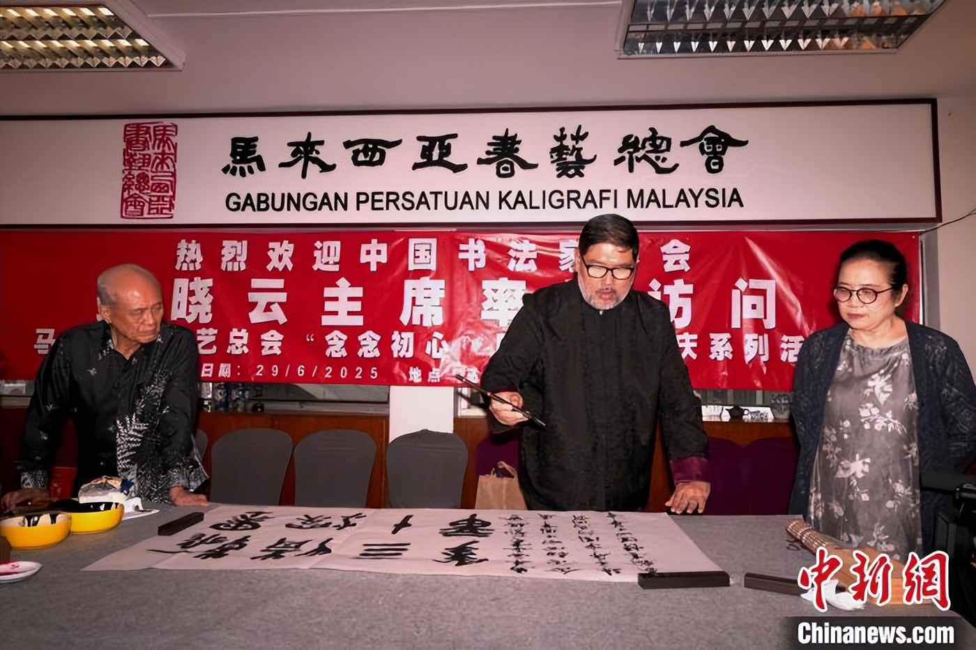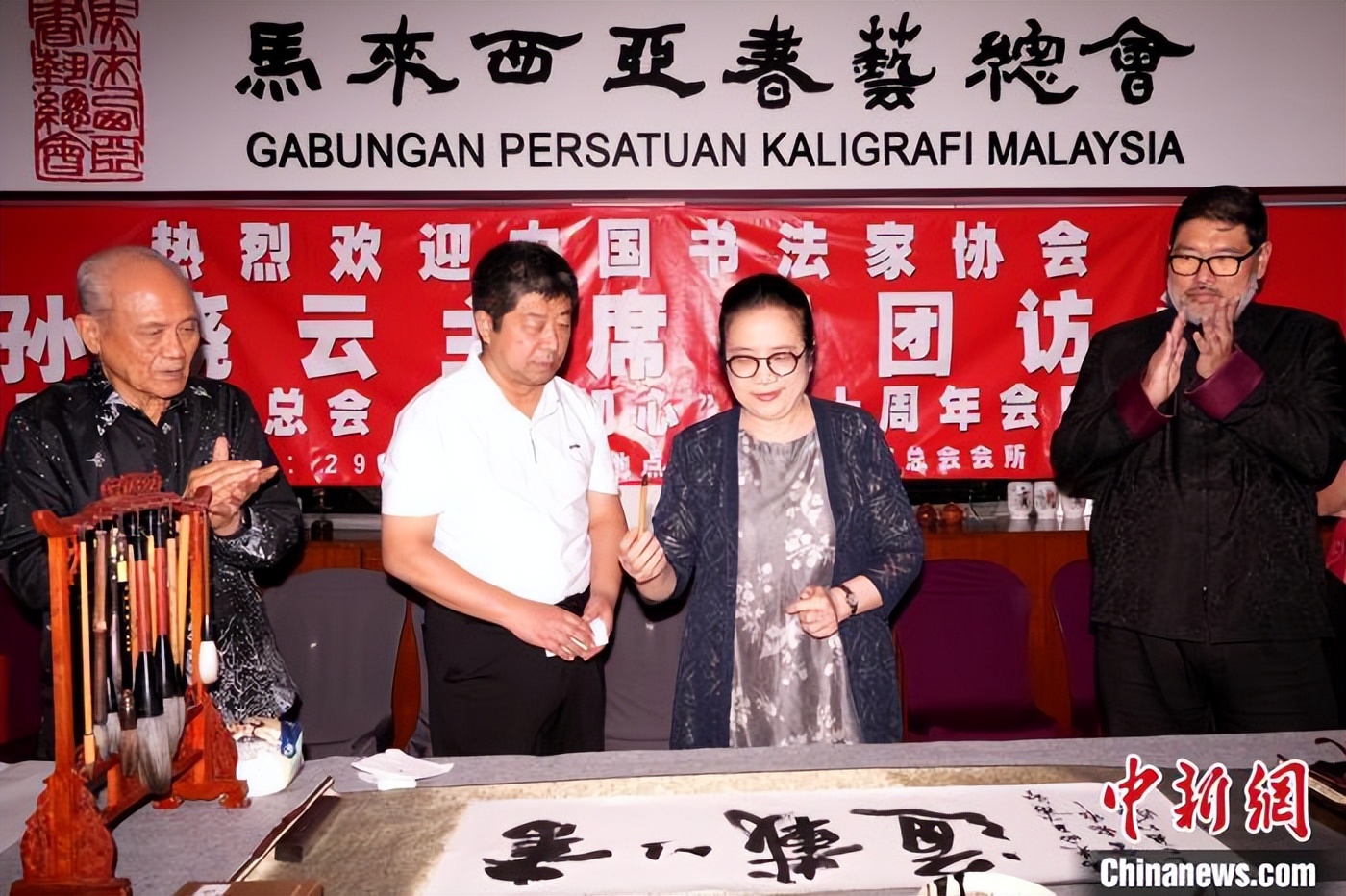 中新网吉隆坡电 (记者 陈悦)中国书法家协会主席孙晓云29日到访马来西亚书艺总会,两国书法界人士共商合作交流,挥毫翰墨传情。