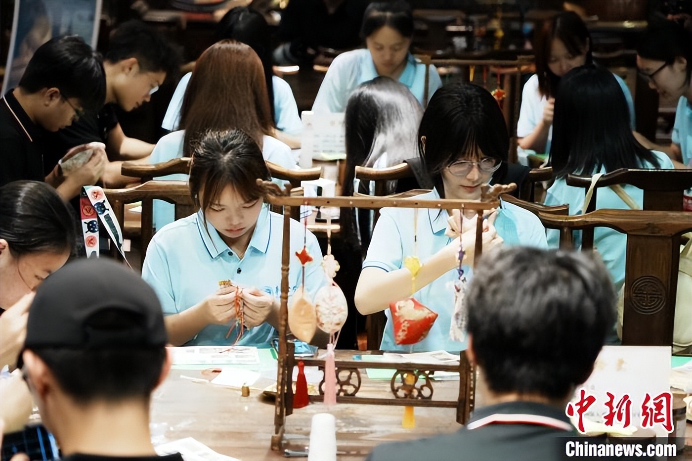 6月29日,华侨大学港澳台侨学生在泉州三道行艺术馆制作香囊。华侨大学供图