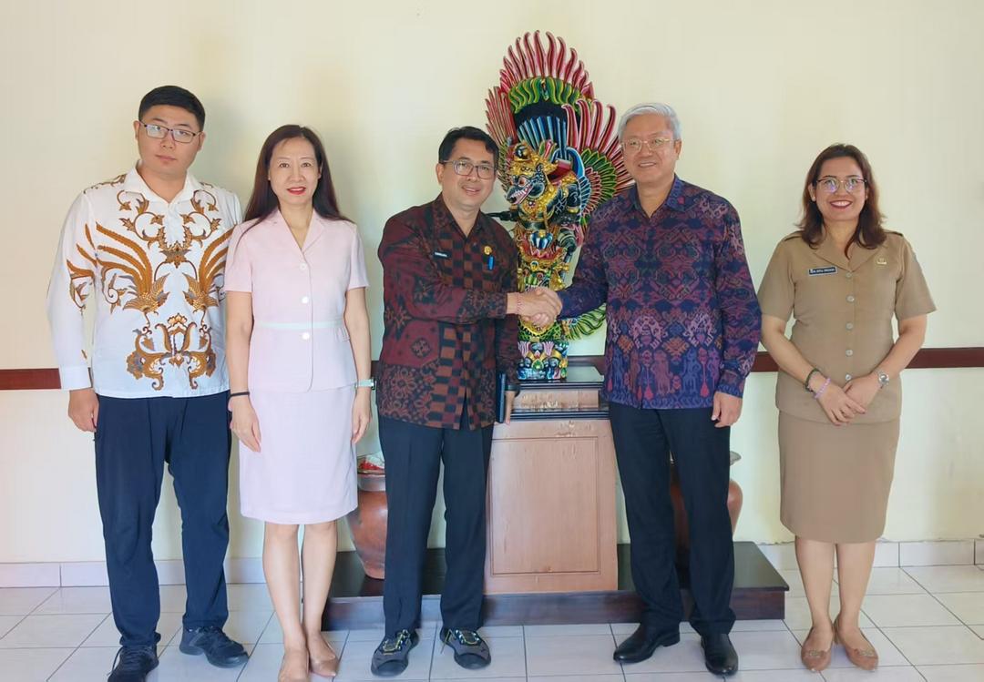 据中国驻登巴萨总领馆消息,6月30日,驻登巴萨总领事张志昇在印度尼西亚巴厘省旅游局拜会新任局长苏马拉查亚。总领馆朱宇副总领事等在座。