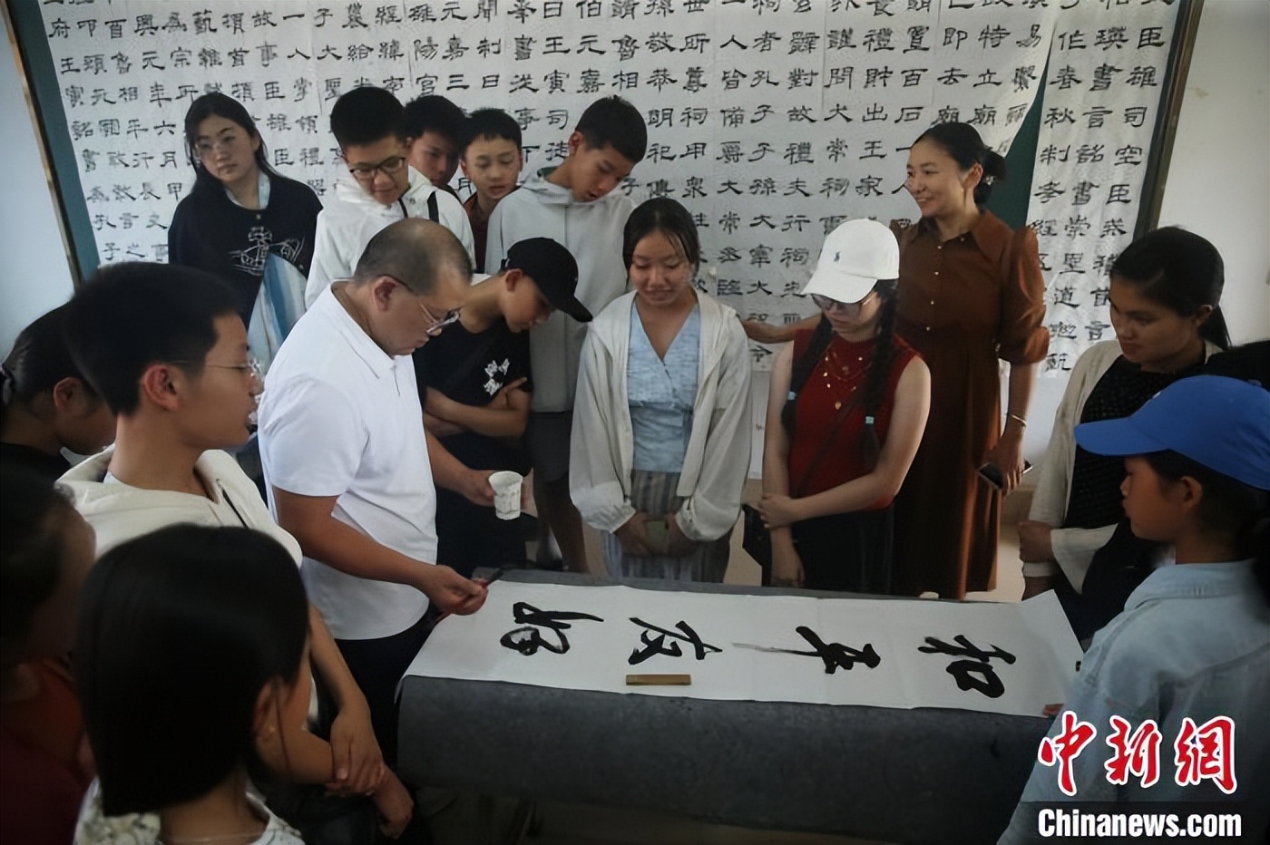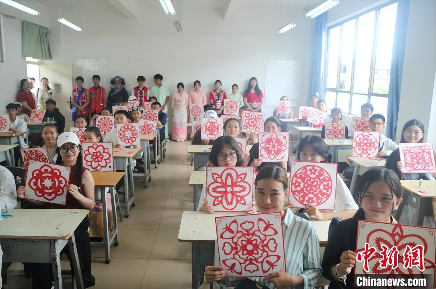 中新网普洱电(黄兴鸿)7月1日,参加第二届老挝华裔新生代“游学普洱”活动的44名师生,前往云南省普洱市民族中学,沉浸式体验剪纸、中国书法等,感受中华优秀传统文化,共话友谊。