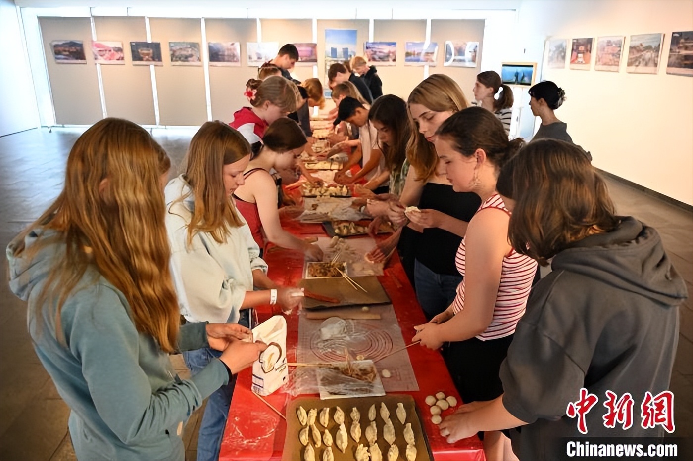 图为同学们动手包饺子。柏林中国文化中心 供图