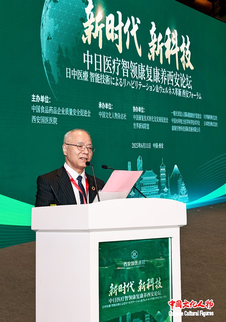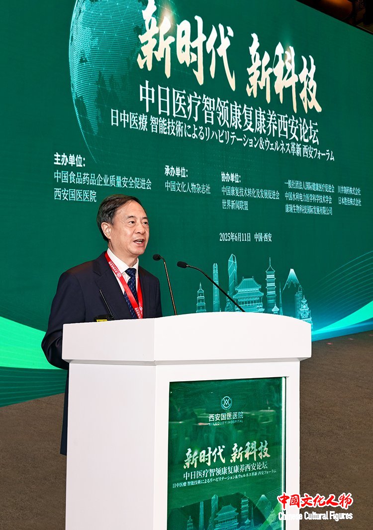 中国文化人物(主编 王保胜 记者 马将平 张东立 苏晴 李鹏)2025年6月11日,由中国食品药品企业质量安全促进会、西安国医医院主办,中国文化人物杂志社承办,中国康复技术转化及发展促进会、世界新闻联盟、中国水利电力医学科学技术学会、一般社团法人国际健康医疗促进会、日本胜佳株式会社、川井制药株式会社、康瑞生物科技协办的“新时代 新科技:中日医疗智领康复康养”西安论坛在西安成功举办。