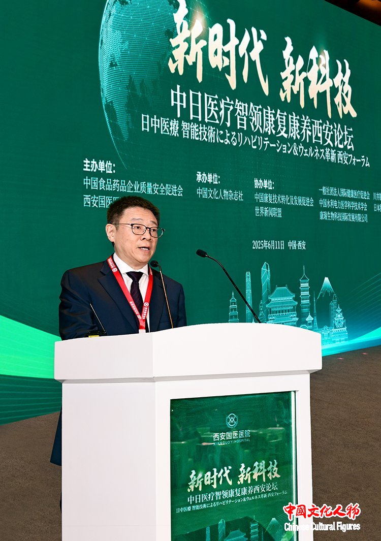 6月11日,由中国食品药品企业质量安全促进会、西安国医医院主办,中国文化人物杂志社承办,中国康复技术转化及发展促进会、世界新闻联盟、中国水利电力医学科学技术学会、一般社团法人国际健康医疗促进会、日本胜佳株式会社、川井制药株式会社、康瑞生物科技协办的“新时代 新科技:中日医疗智领康复康养”西安论坛在西安盛大开幕