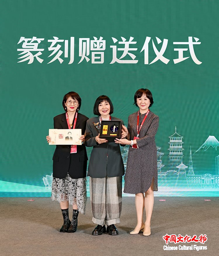 此外,中方代表还以多元艺术形式勾勒中日交融的深厚底蕴:中国文联原副主席、党组副书记、书记处书记覃志刚向鸠山由纪夫亲赠自创书法精品,中国美术家协会理事庄明正则以传神肖像画定格情谊,中国工艺美术大师朱炳仁以精铸铜印相赠,西泠印社理事容铁献上丹青画作,朱炳仁艺术馆馆长董竹则以对联相赠。此外,国际健康医疗促进会常务副会长兼秘书长黄佳和中国康复技术转化及发展促进会驻日特派专员许晔代表芳莉向鸠山幸女士赠送篆刻印章,以金石之韵镌刻两国友好长存的美好愿景。