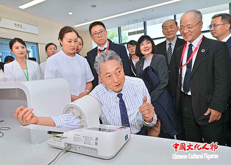鸠山由纪夫在参观西安国医医院时,亲身体验医院的前沿医疗设备与优质医疗服务,并为医院由衷点赞