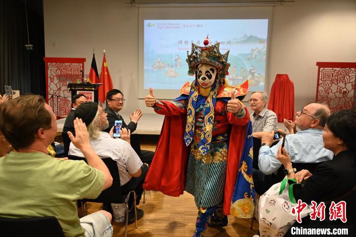 图为7月5日,柏林观众感受川剧“变脸”。柏林中国文化中心 供图