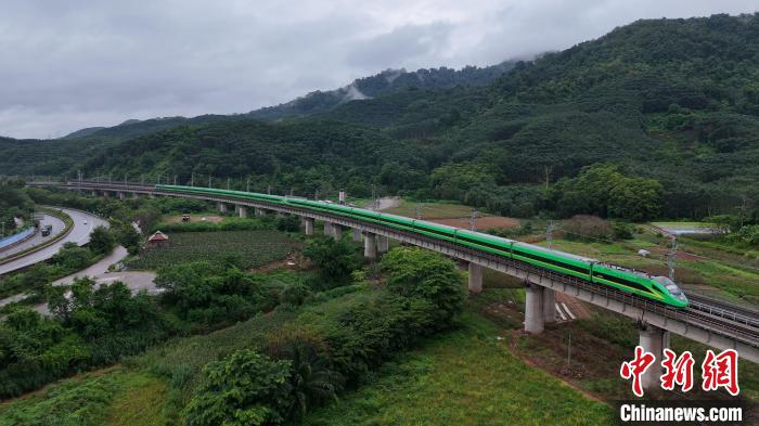 7月2日,一列动车行驶在中老铁路上。杨蕊 摄