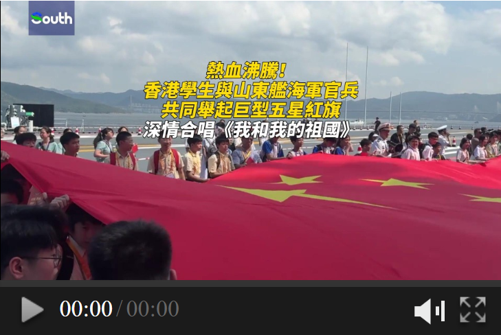 熱血沸騰!香港學生與山東艦海軍官兵共同舉起巨型五星紅旗,深情合唱《我和我的祖國》