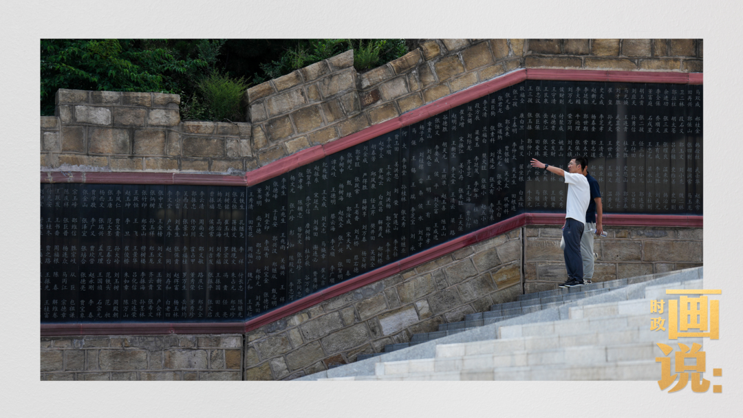 百团大战纪念碑广场一侧的石壁上,镌刻着在这场战役中牺牲的革命烈士名录。