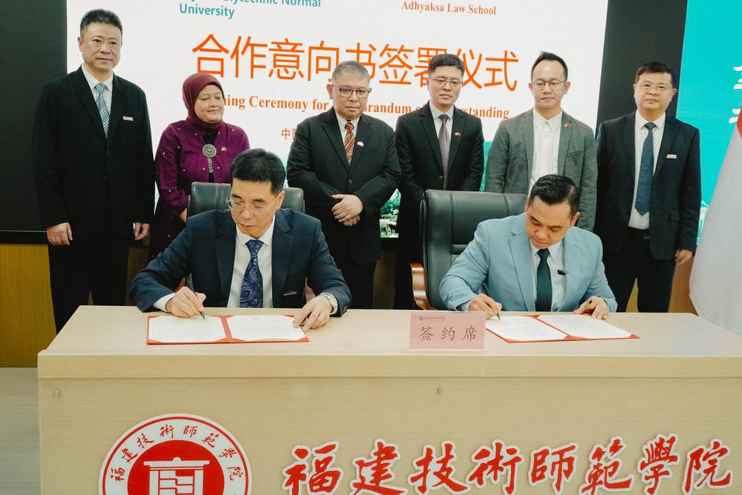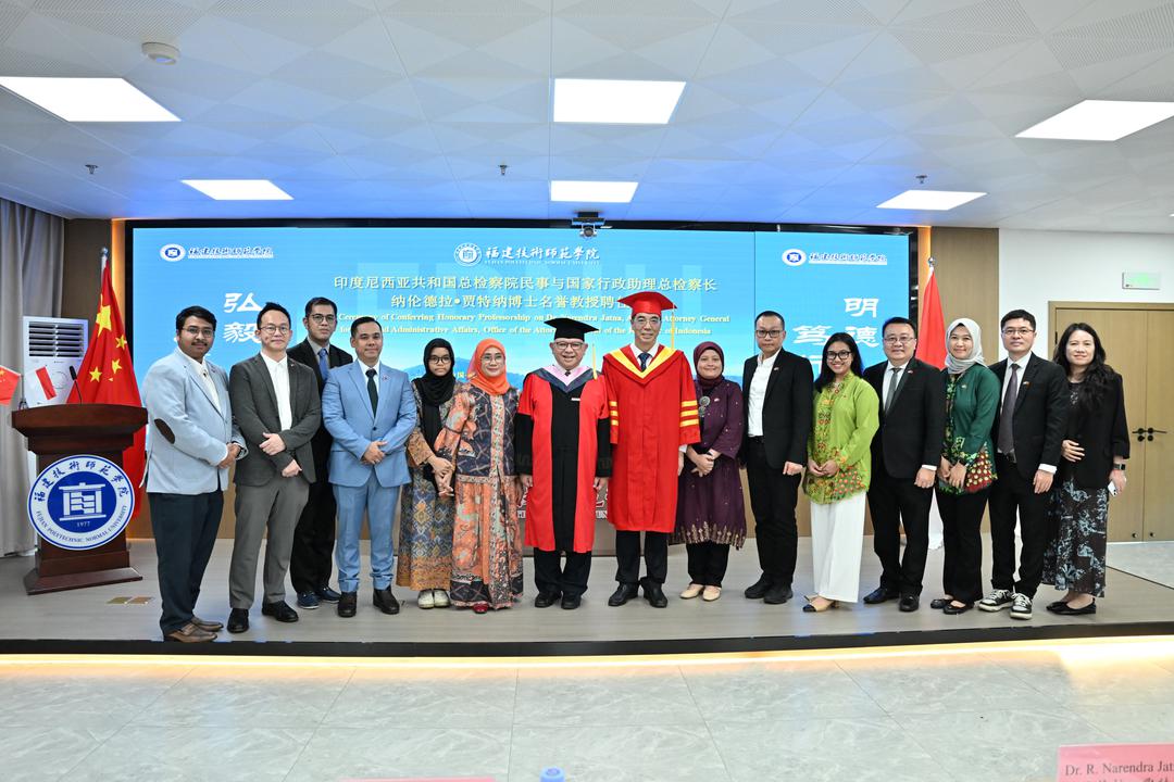 访问福建技术师范学院期间,双方签署了合作意向书,明确将在人才培养、实务培训与学术研究等方面深入合作。在这一重要场合,Dr. Narendra还被正式聘任为福建技术师范学院荣誉教授(Profesor H.C.)。该荣誉不仅体现了中方对印尼法治专家的高度认可,也展现出中印尼教育与法律界合作的深入推进。授聘仪式上,Dr. Narendra表示:“我深感荣幸,并将以此为新起点,继续推动两国在法学研究和人才培养方面的合作。”他还特别感谢了韩善美博士(Dr. Santi)、陈家隆律师以及丁冲博士为促成此次赴华访问所做的大量工作。