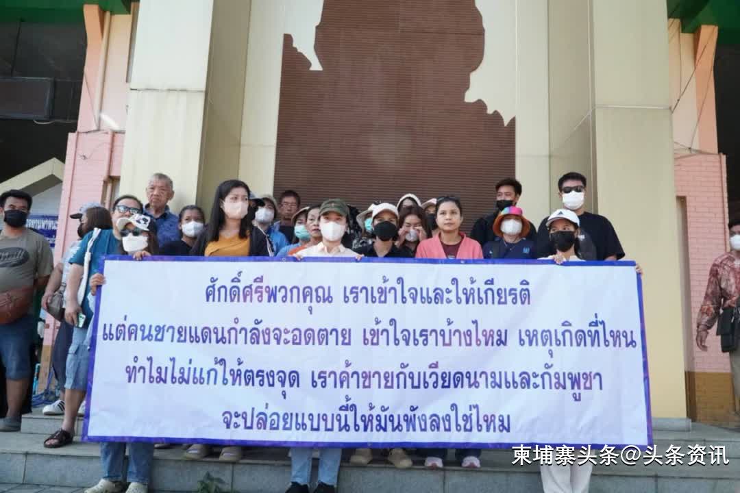 现场抗议商贩手举横幅向泰国军方喊话称:“我们理解并尊重你们的尊严和高贵,但边境的百姓快要饿死了。你们能理解我们一点吗?事情是在哪里发生的?为什么不在那里把问题纠正好?我们是在与越南和柬埔寨的百姓做生意,难道要任由这一切崩塌?”