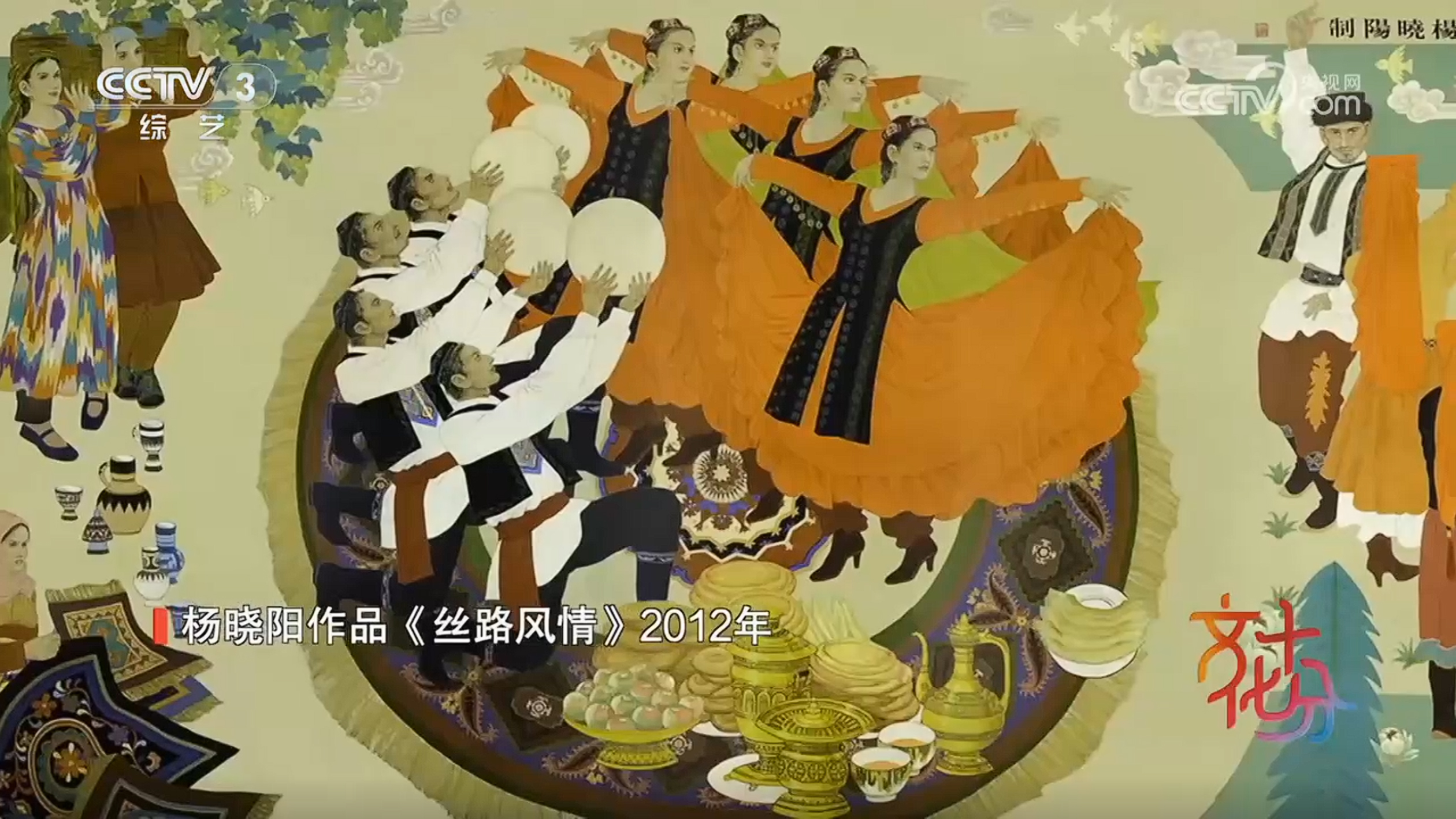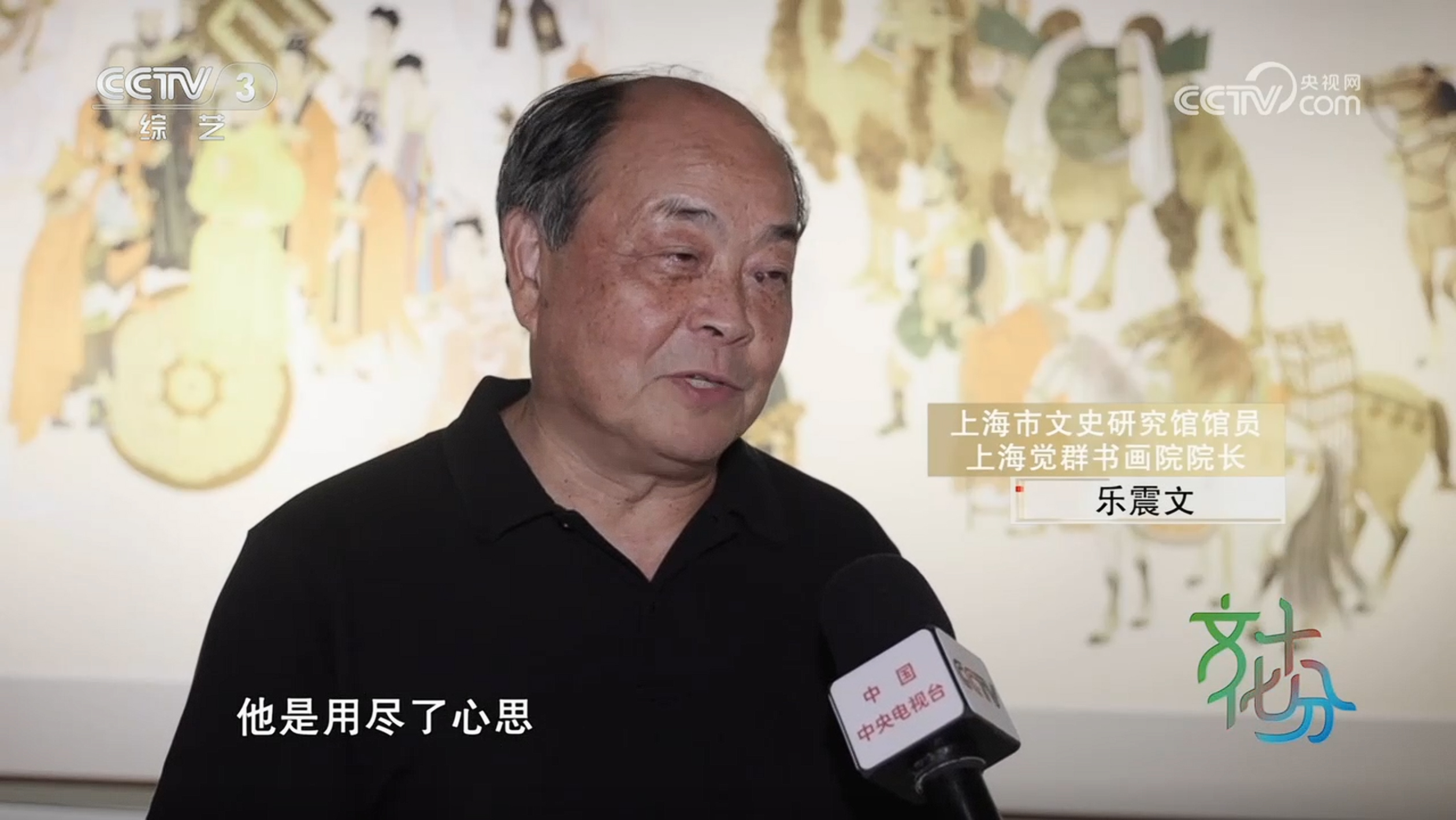 上海市文史研究馆馆员 上海觉群书画院院长 乐震文:对丝绸之路这一块,他是用尽了心思。然后从他年轻到中年,基本上用他的造型能力,用他的对丝绸之路的理解,以及他亲身走了一遍丝绸之路,这个感觉就不一样。题材以及人物的动作,以及色彩,他对人物的造型、构图的把控都非常令人刮目相看。