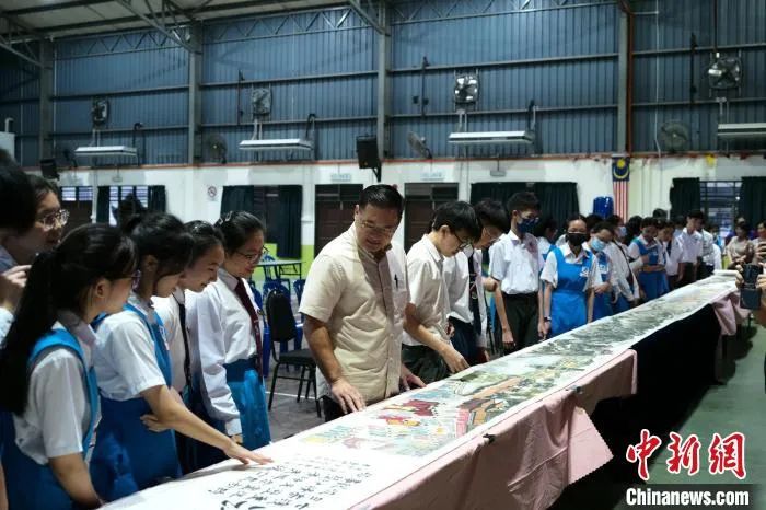 同学们观赏郑和下西洋长卷,了解郑和事迹。 记者 陈悦 摄