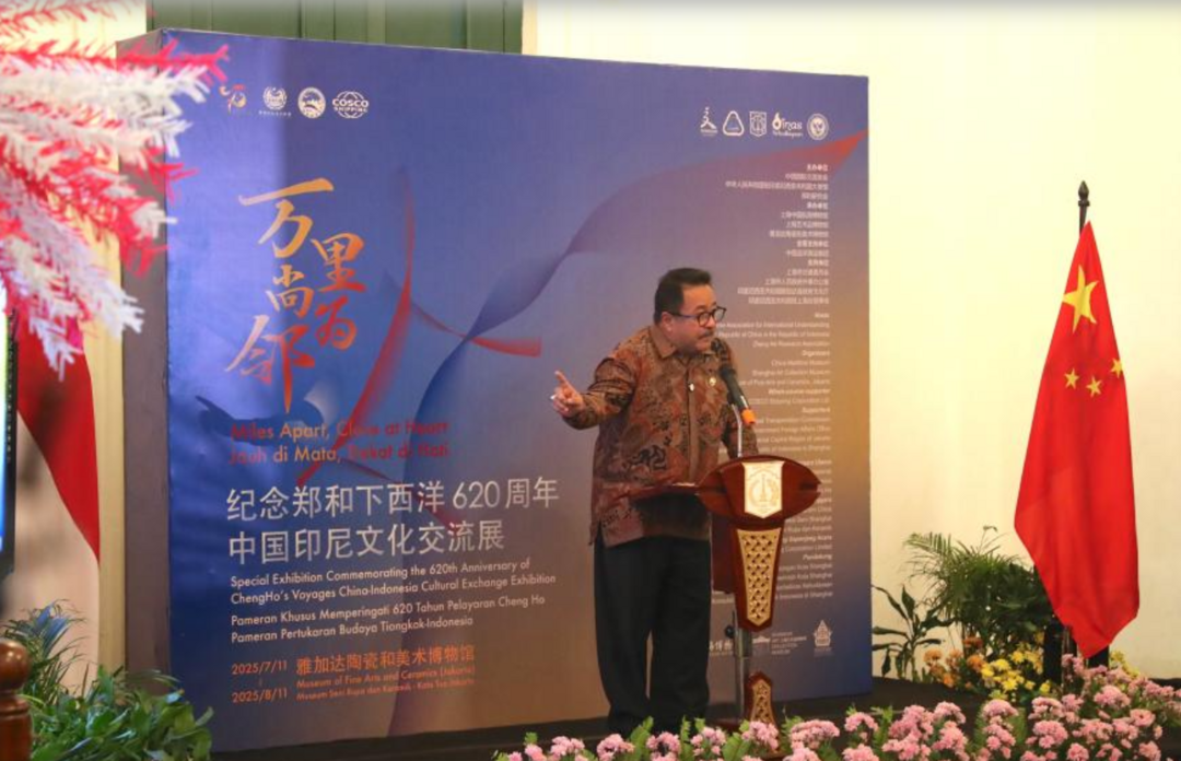 中国驻印尼大使馆公使周侃在开幕式上致辞说,2025年是郑和首次下西洋620周年,也是中国与印尼建交75周年、万隆会议举行70周年。在此历史时刻举办本次展览,不仅是对两国悠久交往历史的致敬,更是对和平发展理念的传承与弘扬,体现了中印尼双方在新时代推动文明互鉴、深化人文交流的共同愿望。