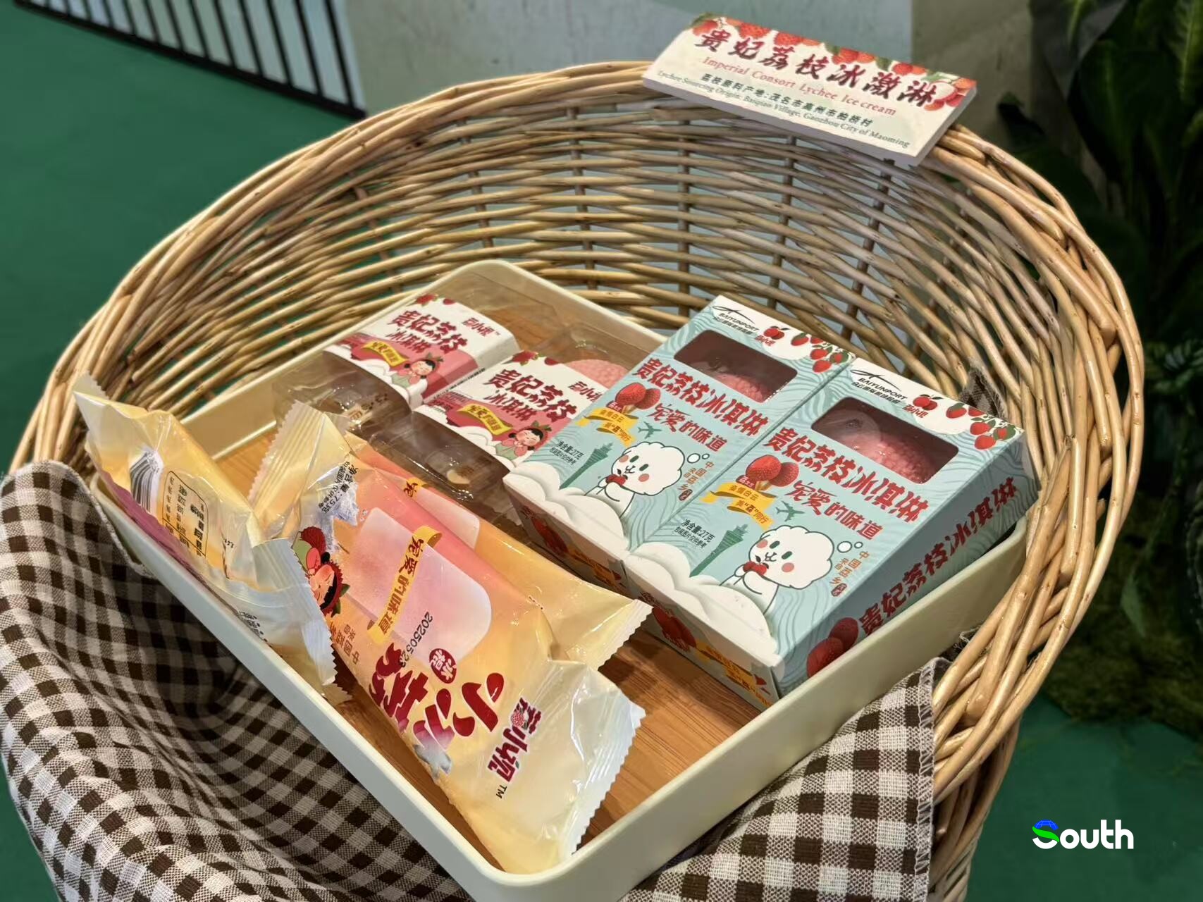 The venue also features themed photo backdrops, interactive signs, and displays highlighting major lychee-producing cities such as Guangzhou, Maoming, and Dongguan. Visitors can also enjoy frozen lychee treats and take home souvenir packs, with staff on-site offering information on related promotional campaigns.