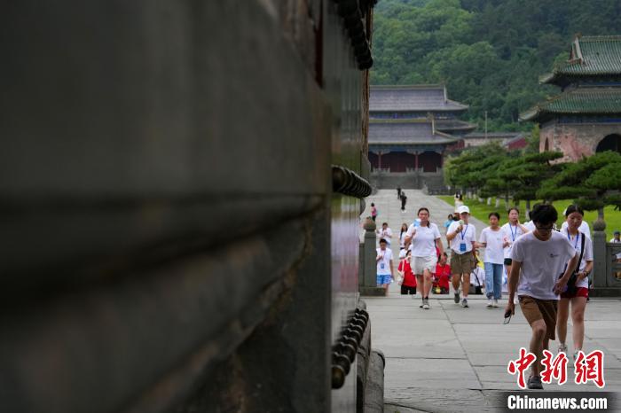 图为“湖北寻访之旅”夏令营营员游览武当建筑。张倩龙 摄