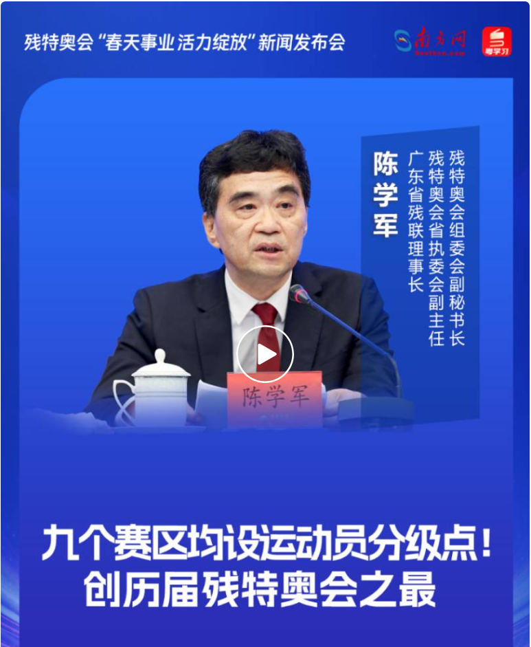 今年4月,广东残联联合21个省直单位,推动广东辅具产业向新材料、智能化、信息化进军。本届残特奥会将继续为广东智造提供展示机会,通过残特奥会演示产品应用场景。