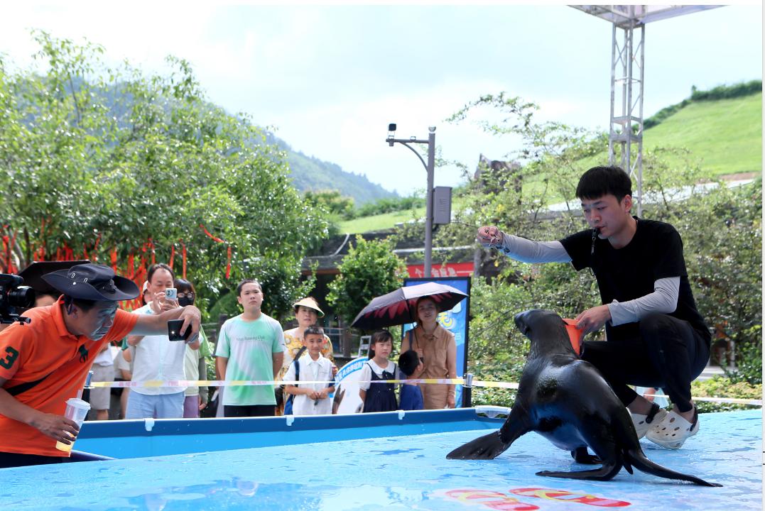 活动现场,游客们纷纷被这些平时难得一见的“萌宠”动物吸引。企鹅馆内,两只麦氏环企鹅时而优雅踱步,时而与人们对视交流;海狮秀场,两只海狮大展才艺,时而顶球、时而戏水,精彩表演赢得了阵阵掌声;水豚互动区上演的“佛系”戏码也是非常有趣,其“淡定帝”的呆萌形象瞬间圈粉无数。