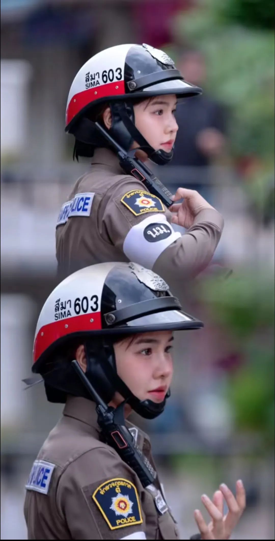 这位备受关注的女警官名叫Mild,目前担任呵叻市(即呵叻府的首府城市)警察局交通科副警官,毕业于泰国警官学校第73期,至今已有13年警龄。她的日常工作主要负责在学校高峰时段驾驶接送学生的电车,并在校门口维持交通秩序。此外,她还积极参与交通安全宣传,长期推动摩托车骑行时必须佩戴安全头盔的意识建设。
