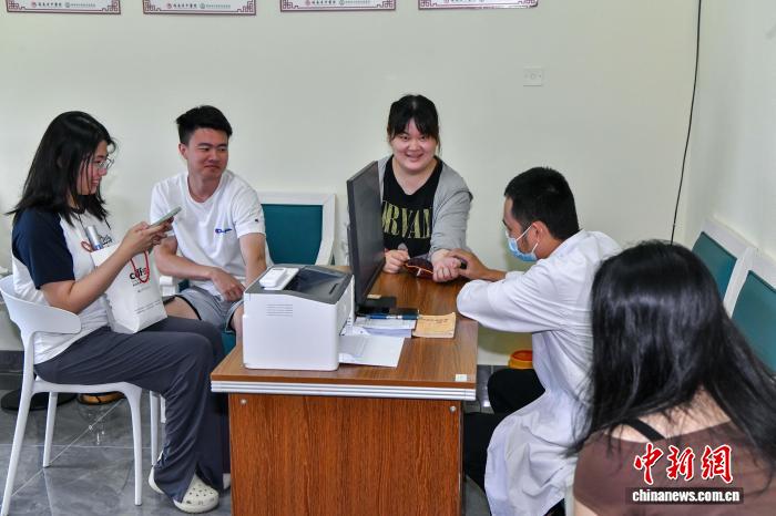 7月20日,2025海外华裔大学生海南研习活动走进屯昌梦幻香山旅游区,图为华裔大学生体验中医。中新网记者 骆云飞 摄