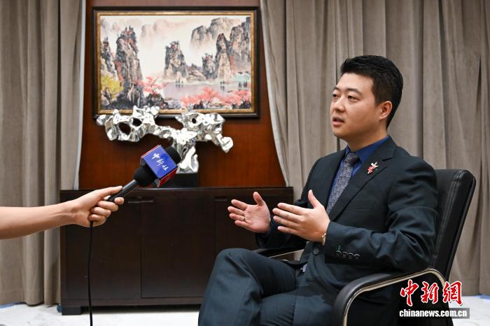 图为全球华裔新生代联盟副会长、四川省侨联青年委员会执行会长王钦甲接受中新网记者专访。中新网记者 何蓬磊 摄