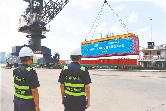 在海关关员监管下,“江门高沙-深圳蛇口”组合港开通。