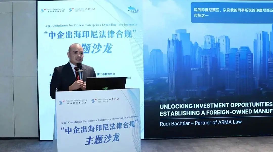 信实·阿尔曼联合办公室Dewi Arum律师简要介绍了ARMA律师事务所,Rudi Bachtiar律师则以制造业为例,详解外资公司在印尼设立流程、股权限制及本地成分要求。