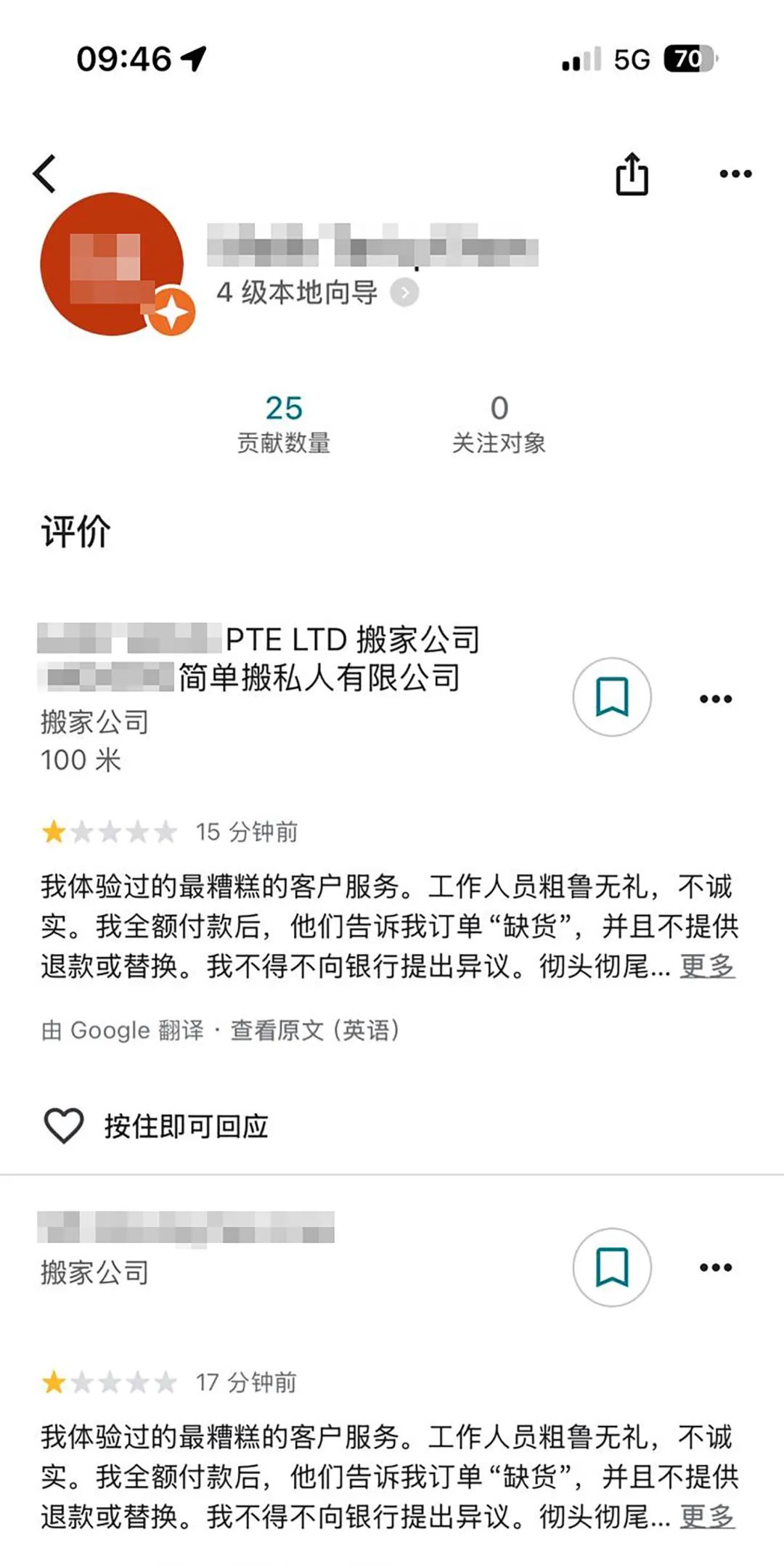 另一家搬家公司也跟《新明日报》证实,受网军胁迫买“好评”。