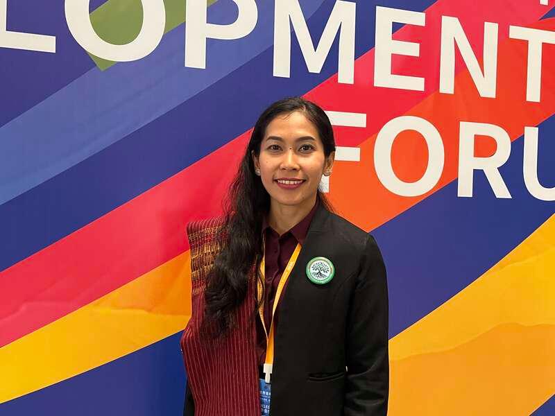 中国国家能源集团印尼爪哇电厂公共关系部经理安琪·西洪宾参加2025年世界青年发展论坛。中青报·中青网记者 周围围/摄
