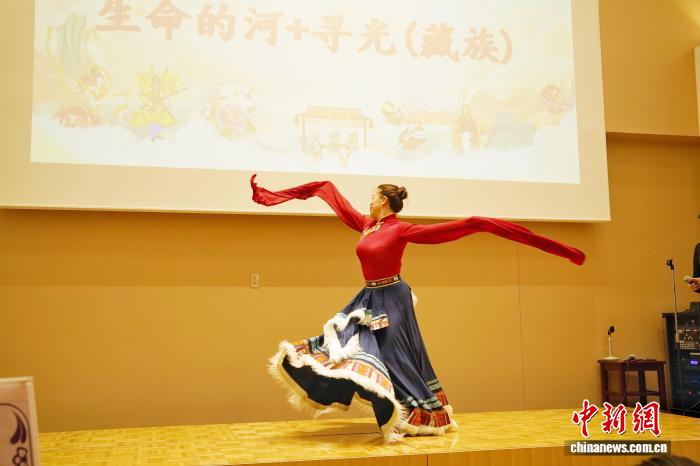开幕式现场,来自重庆的中华文化大乐园教师团队带来了中国民歌、传统武术、民族舞蹈、诗歌朗诵、民族乐器等一系列精彩演出。男女声合唱《我的深情为你守候》以歌声传递中日友好的温度;武术《功夫扇+太极伞》刚柔并济尽展中华武魂;诗乐《水调歌头·明月几时有》将洞箫与朗诵相融,共寄千里婵娟祈愿;藏族舞蹈串烧《生命的河》《寻光》带观众触摸雪域心跳;综合展示《剪纸+扎染+中国画+书法+民族乐器》让指尖非遗在笔墨纸砚与剪刀彩布间绽放华光。