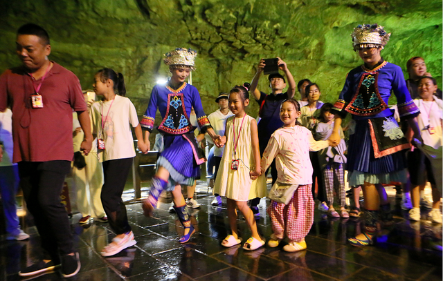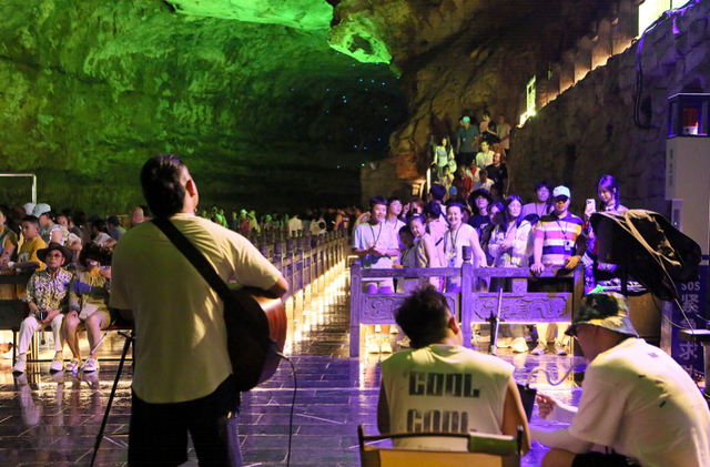 “洞内凉爽如春,奇妙的光影、美妙的音乐与自然美景完美的融合在一起。”来自广东的杨先生感叹道:“在亿万年的溶洞中聆听音乐,观看非遗表演,仿佛穿越时空与地球对话,这种体验非常奇妙!”