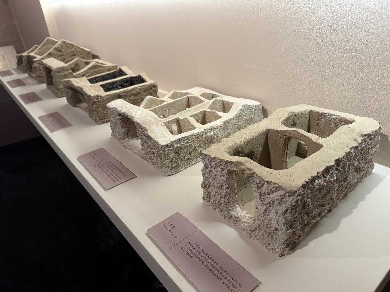 除了還原度極高的復原洞窟外,本次展覽還集結了北涼石塔、回鹘文木活字、蹲獅磚等14件國家一級文物以及禅定佛像、《全天星圖》等敦煌珍品。其中,段文傑、李複臨摹407窟《三兔飛天藻井》以其「神秘三兔」圖案跨越千年,貫穿於四大宗教之中,被廣泛應用在不同宗教的建築和器物裝飾畫中,畫中包括三兔在內的所有元素,無一例外都是黃金分割比例,蓮花中三兔盤旋追逐的裝飾圖案,使靜止的圖案呈現出了動的情趣,構思精妙絕倫。南山博物館設計展覽部主任黃海濱在接受South專訪時表示,本次展出的文物、複製窟以及臨摹壁畫作品都是敦煌研究院的精品展品,除了158窟約15米的大佛外,其他幾乎都是按照1:1的比例去還原的壁畫、石窟,盡可能地為粵港澳大灣區的觀衆們還原一個真實的敦煌。「在我看來,新興發展的深圳與歷史悠久的敦煌都有著海納百川的特點。它們一個容納了來自五湖四海的奮鬥者,另一個則是集合了來自不同地域、不同文明的人,而這些和而不同的人和物,都能在兩地交融發展,實屬難得。」 她說。