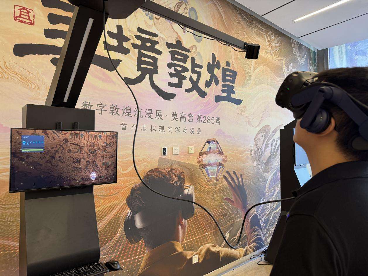為了增加觀衆身臨其境的「沉浸感」,敦煌研究院聯合騰訊推出的莫高窟第285窟數字沉浸體驗,借助4K高清屏,觀衆可以身臨其境「穿越」到精美絕倫的壁畫世界,打破時空束縛。此外,觀衆還可以在南山博物館二層中庭的「衣見敦煌」互動體驗區,從30多套AI生成的敦煌主題服飾中自由選擇,現場拍攝敦煌壁畫同款數字寫真,親身感受敦煌服飾的獨特魅力。