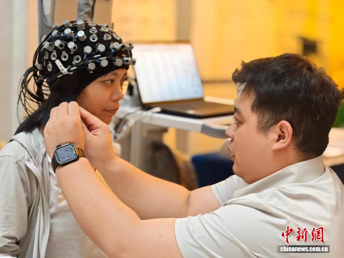图为与会人员体验康复领域应用产品。叶秋云 摄