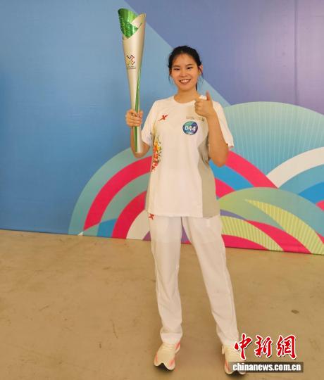 7月26日,成都大学马来西亚留学生王馨宁与成都世运会火炬合影。王馨宁供图