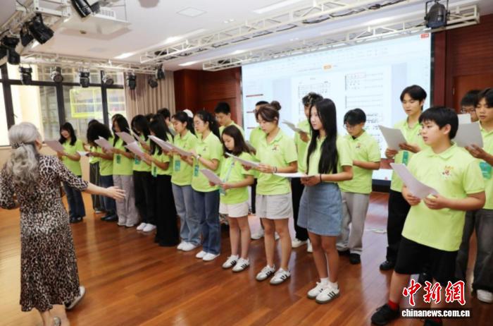 在徐汇区青少年活动中心,海外华裔青少年与上海学生结对交流,共同演绎经典民歌《茉莉花》。在指挥老师金镭的指导下,营员们细抠咬字、打磨旋律,从“好一朵美丽的茉莉花”的轻柔起调,到“又香又白人人夸”的欢快递进,一遍遍将江南小调的细腻与深情融入到歌声中。