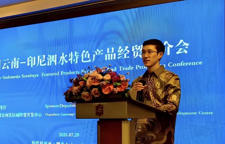 据中国驻泗水总领馆消息,7月29日,谭大有代总领事应邀出席中国云南-印尼泗水特色产品经贸推介会,云南省商务厅代表团一行、泗水工商界代表约50人参加。