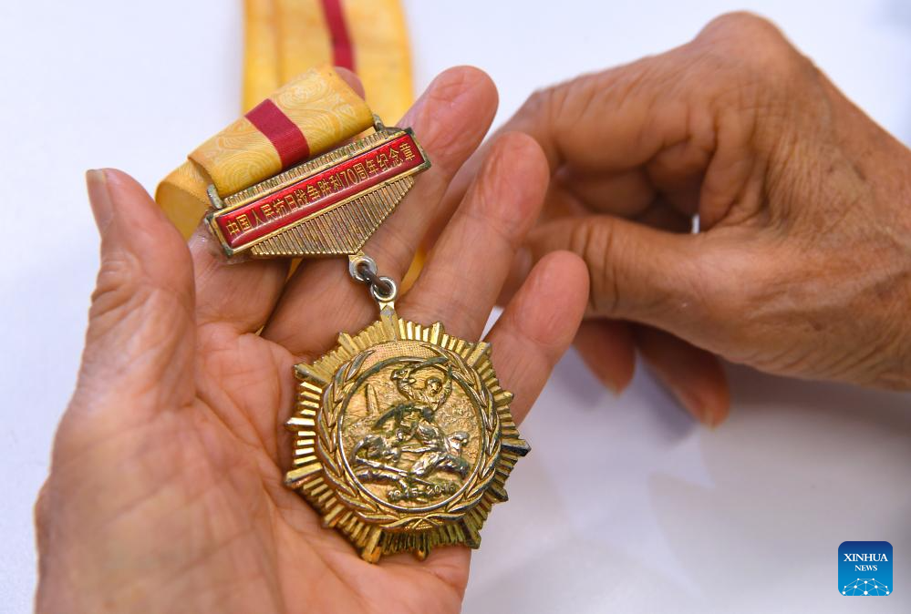 Lin Zhen presents her medal in Tuen Mun District of south China’s Hong Kong, June 24, 2025.(Xinhua/Chen Duo)