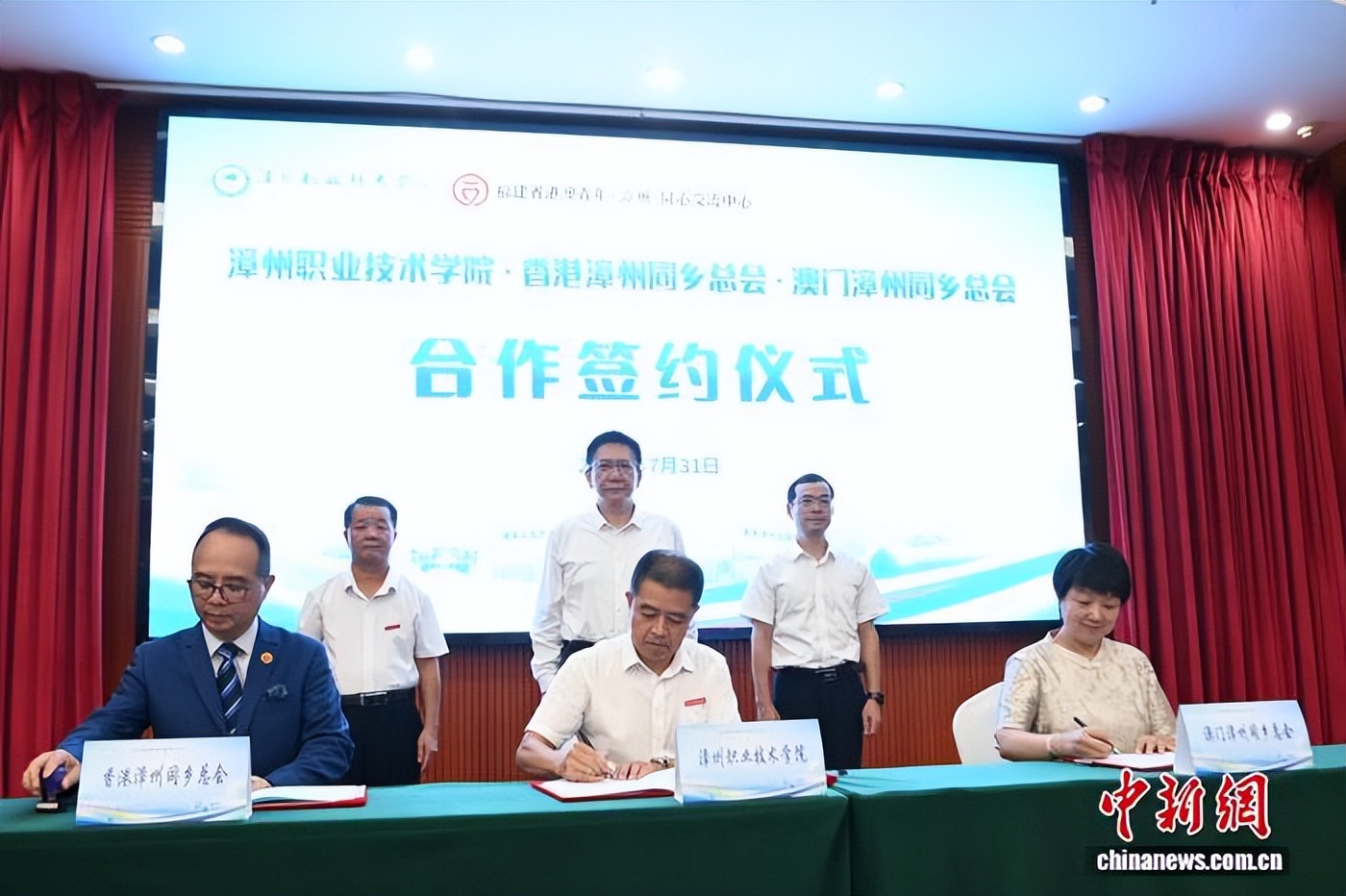 漳州职业技术学院与香港漳州同乡总会、澳门漳州同乡总会举行合作签约仪式。中新网记者 张金川 摄