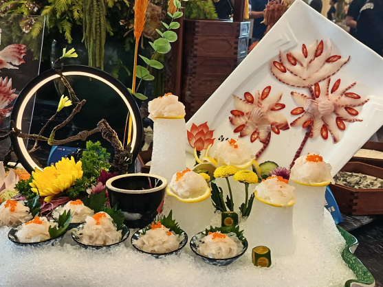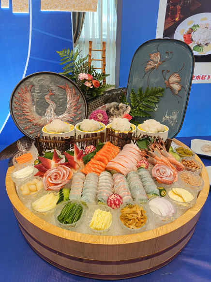 7月30日,2025第三届顺德鱼生节启动仪式在容桂街道龙悦湾酒家举行。顺德菜发展促进会过去一年培训了近200名专业鱼生制作师,推动46家企业实现标准化运营。现场,各镇街展示了特色鱼生作品,比如陈村鱼生结合花艺设计,勒流鱼生加入了南乳薄脆。