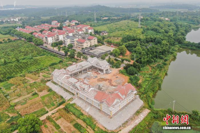 7月17日,江西省宜春市上高县敖山镇洋林村,一个围绕傣族泼水文化而建设的泼水广场正在施工中。 刘力鑫 摄
