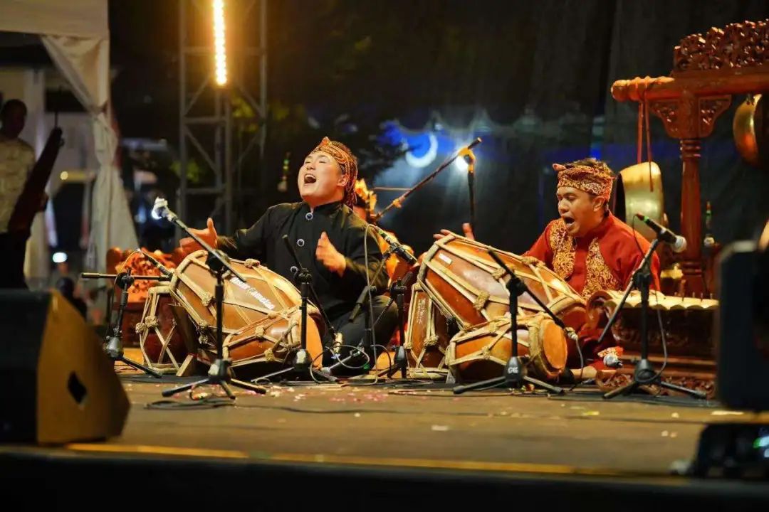 7月24日晚,在Waduk Sermo湖畔的民间艺术节开幕式上,该校作为首支演出队伍,以一曲中国二胡与印尼甘美兰共同演绎的《茉莉花》拉开序幕,婉转悠扬的旋律令现场观众沉醉其中。随后高胡作品《雨打芭蕉》、唢呐《胜利秧歌》则以激昂节奏点燃全场热情。压轴节目《印尼kendang鼓与中国鼓的对话》将两国打击乐的独特魅力完美融合,铿锵有力的鼓点如同心跳般共振,赢得现场观众经久不息的掌声。
