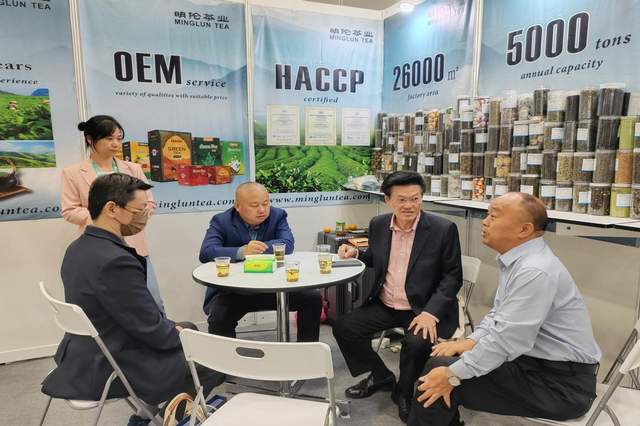 在展会期间,马来西亚中国总商会会长、拿督林恒毅一行到7家茶企进行了探访、交流,为湖南茶产品如何更好地进入马来西亚市场出谋划策;马来西亚中国茶商会会长、万茂有限公司董事长李志贤则来到湖南展区商洽业务、直接选品;马中医药保健食品总商会署理总会长、马来西亚茶业商会会长陈祈福一行到展区交流商议合作、扩大茶叶贸易相关事宜;马来西亚中国餐饮业协会周鹏邦部长走访每一个展位并邀请参展的茶企、食品企业去餐饮协会座谈商洽;还有马来西亚湖南商会成员到后或交流、或介绍客商、或签约直接代理等。