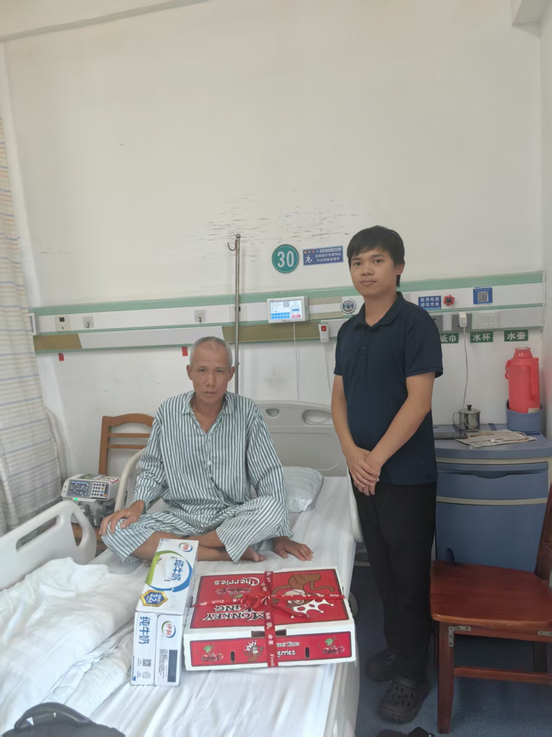 当日上午,工作人员来到医院病房,向彭先生转达了县侨联的关切之情。详细询问了彭先生的病情、治疗进展及医疗费用等,鼓励其保持乐观心态积极配合治疗,并代表侨联送上营养牛奶、新鲜水果等慰问品。
